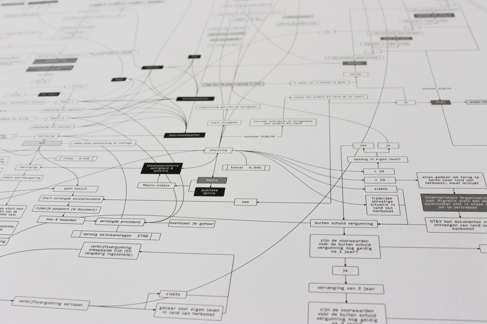 Instead of picking a side and adding to the divisive nature of the issue, we decided to visualise the process that an asylum seeker has to go through, resulting in the bold statement that the process is incredibly complex.